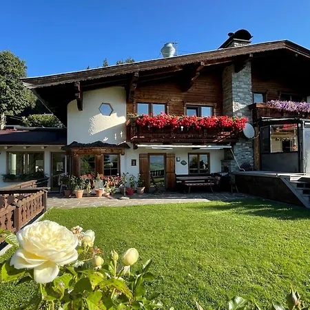 Ferienwohnung Anni dairesi, Kitzbuehel Müzesi'a 7 km mesafedeki dağ manzarasına sahiptir. Daire 90 m²lik olup 3 yatak odası, 3 banyo ve ufak mutfağa sahiptir.